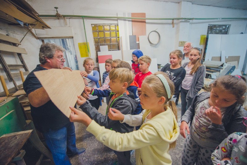 W kolejnym dniu młodzież odwiedziła stolarnię Piotra Kluski. Mistrz w swoim stolarskim fachu przybliżył grupie jak wygląda praca stolarza, jakich umiejętności wymaga, a także przestrzegł jak dużą ostrożność trzeba zachować podczas pracy z piłą czy wiertarką. Najmłodsi mieli okazję nie tylko podziwiać gotowe wyroby z drewna, ale także poznali poszczególne etapy pracy oraz… sami spróbowali swoich sił w stolarskim rzemiośle.