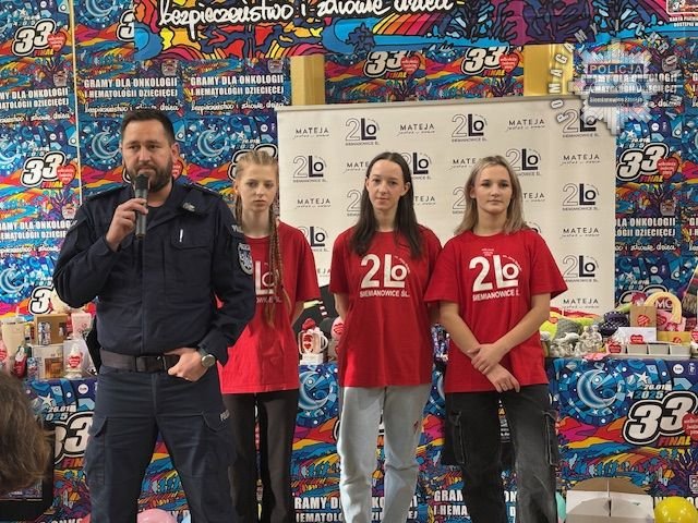 Na tydzień przed 33. finałem Wielkiej Orkiestry Świątecznej Pomocy siemianowicki policjant spotkał z się młodzieżą, która w dniu finału będzie kwestować datki. Stróż prawa odwiedził młodych wolontariuszy ze Szkoły Podstawowej nr 13 oraz II Liceum Ogólnokształcącego im. Jana Matejki. Mundurowy przekazał im cenne rady z zakresu bezpieczeństwa, w szczególności zwracał uwagę, by miejsca, w których będą się poruszać, były bezpieczne i oświetlone. Zachęcał, by chodzili w grupach, a nie pojedyńczo. Policyjny profilaktyk apelował, aby w sytuacji próby kradzieży puszki pamiętali, że ich zdrowie jest najważniejsze. Gdyby doszło do takiej sytuacji należy niezwłocznie informować służby mundurowe dzwoniąc na numer 112.