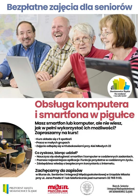 Zachęcamy do zapisów w Biurze ds. Seniorów i Integracji Międzypokoleniowej przy Urzędzie Miasta (ul. Jana Pawła II 1) lub telefonicznie pod numerem 32 765 11 03.