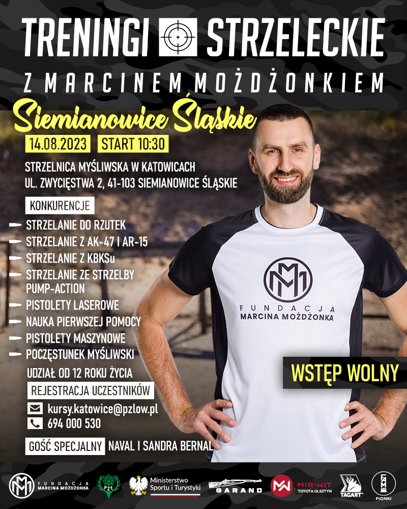 Polski Związek Łowiecki Zarząd Okręgowy Katowice serdecznie zaprasza na trening strzelecki z Marcinem Możdżonkiem – siatkarzem, a prywatnie także myśliwym.