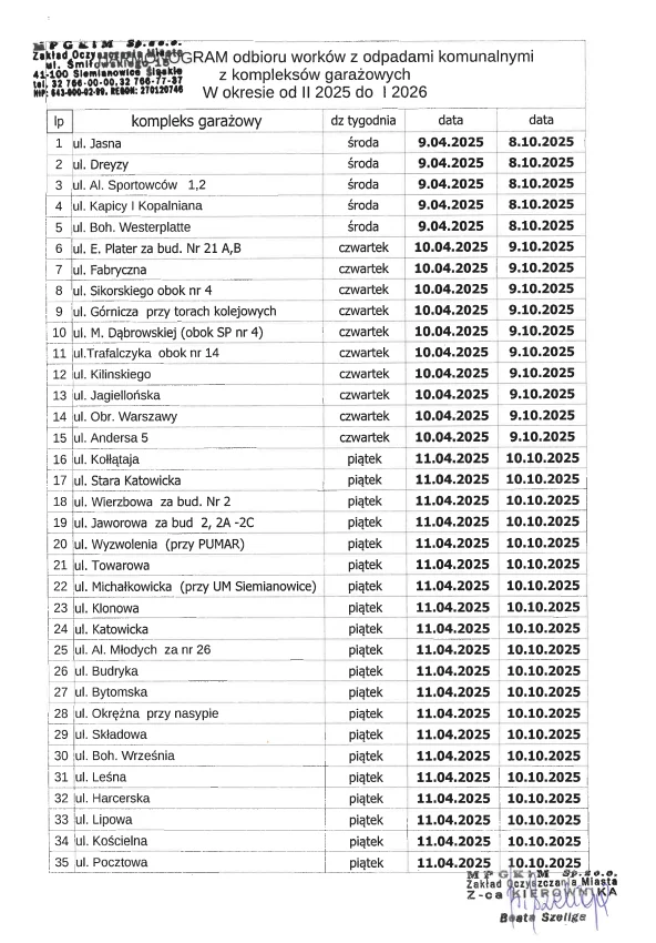 Nadchodzą ważne terminy odbioru odpadów komunalnych z kompleksów garażowych. Śmieci muszą być wystawione w oznakowanych workach, które dostępne są w Wydziale Gospodarki Komunalnej przy ulicy Michałkowickiej 105, pokój 014.