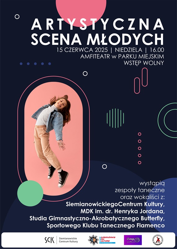 Podczas koncertu „Artystyczna Scena Młodych” zaprezentują się zespoły taneczne oraz wokaliści, którzy szlifują swoje talenty w różnych instytucjach kultury. Wystąpią artyści związani z Siemianowickim Centrum Kultury, Młodzieżowym Domem Kultury im. dr. Henryka Jordana, Sportowym Klubem Tanecznym Flamenco oraz Studiem Gimnastyczno-Akrobatycznym Butterfly.