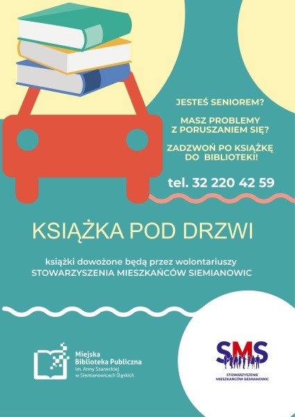 Wspólnie ze Stowarzyszeniem Mieszkańców Siemianowic  proponujemy dowóz książek dla tych, którzy nie są w stanie do nas przyjść.