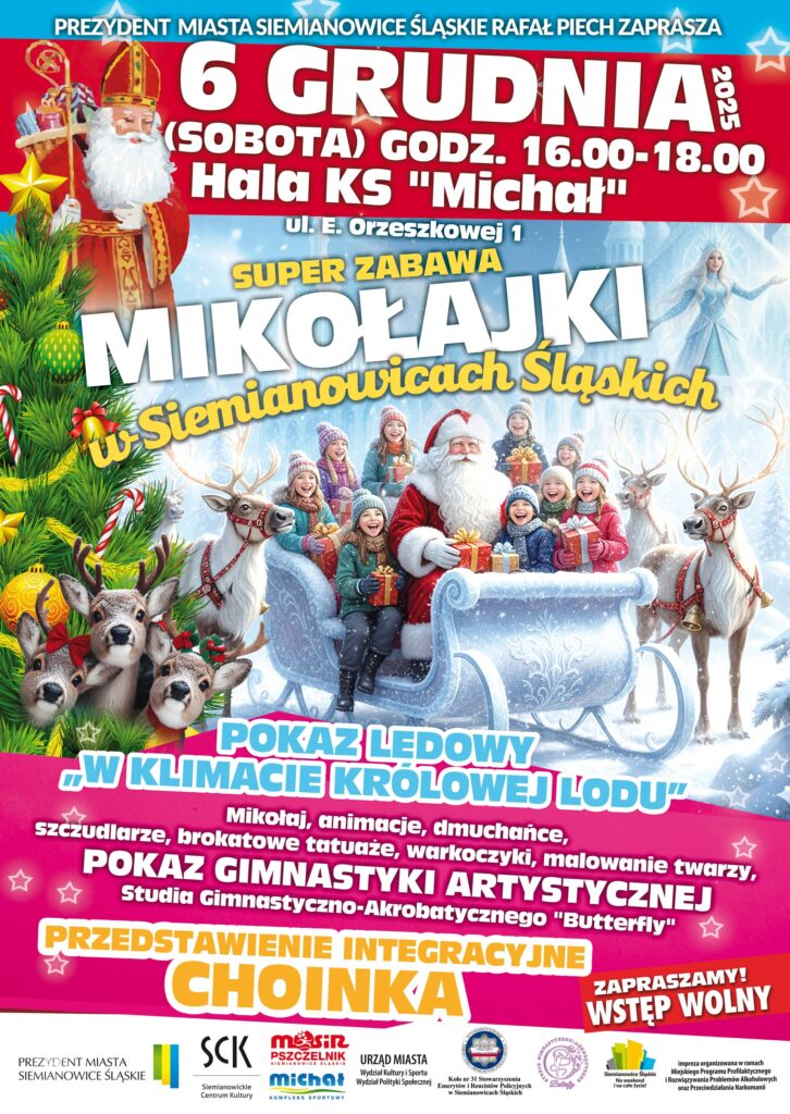 6 grudnia w Hali KS „Michał” przy ul. Elizy Orzeszkowej 1 odbędą się wyjątkowe Mikołajki dla dzieci i ich opiekunów. Wydarzenie zaplanowano w godzinach 16:00–18:00, a organizatorzy przygotowali liczne atrakcje, które wprowadzą najmłodszych w świąteczny nastrój.