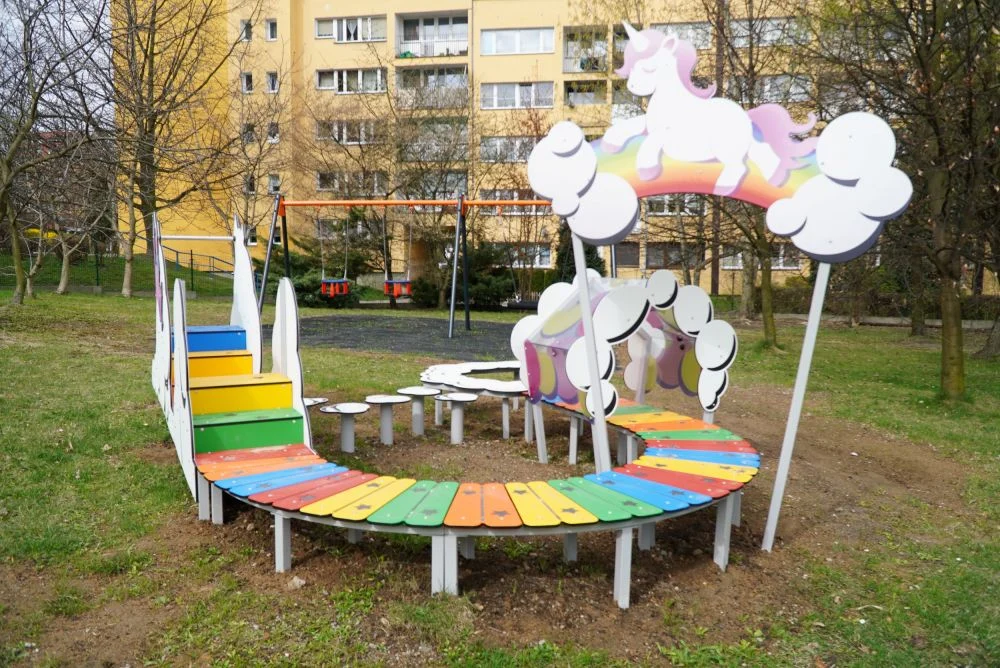W ramach zadania na terenie żłobka zamontowano nowoczesne konstrukcje do huśtania, wspinania i zjeżdżania, a także kolorowe elementy ogrodowe oraz pomoce do zajęć edukacyjnych na świeżym powietrzu. Jak podkreślono, wszystkie urządzenia posiadają wymagane atesty i są dostosowane do potrzeb dzieci poniżej 3. roku życia.