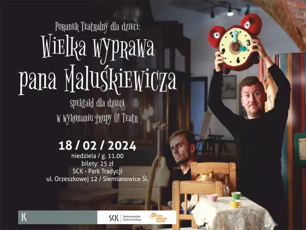 Urząd Miasta zaprasza na kolejny Poranek Teatralny do Siemianowickiego Centrum Kultury – Parku Tradycji. W najbliższą niedzielę 18 lutego o godzinie 11.00 najmłodsi będą mogli zobaczyć „Wielką wyprawę Pana Maluśkiewicza” w wykonaniu O!Teatru.
