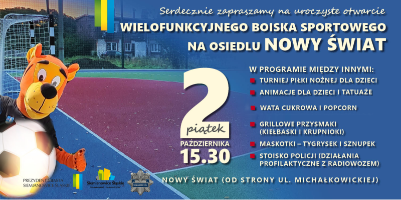 W imieniu Prezydenta Miasta Siemianowice Śląskie – Rafała Piecha Urząd Miasta zaprasza na oficjalne, uroczyste otwarcie boiska wielofunkcyjnego na “Nowym Świecie” .