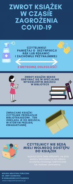 Nie od razu wznowimy działalność na wszystkich polach, ale o tym będziemy informować na bieżąco. W trosce o WASZE bezpieczeństwo oraz w oparciu o wytyczne Ministerstwa, Biblioteka wprowadza nowe zasady funkcjonowania, które będą obowiązywać w czasie trwającej pandemii. Szczegóły znajdują się na naszej stronie internetowej : www.mbpsiemianowice.pl.