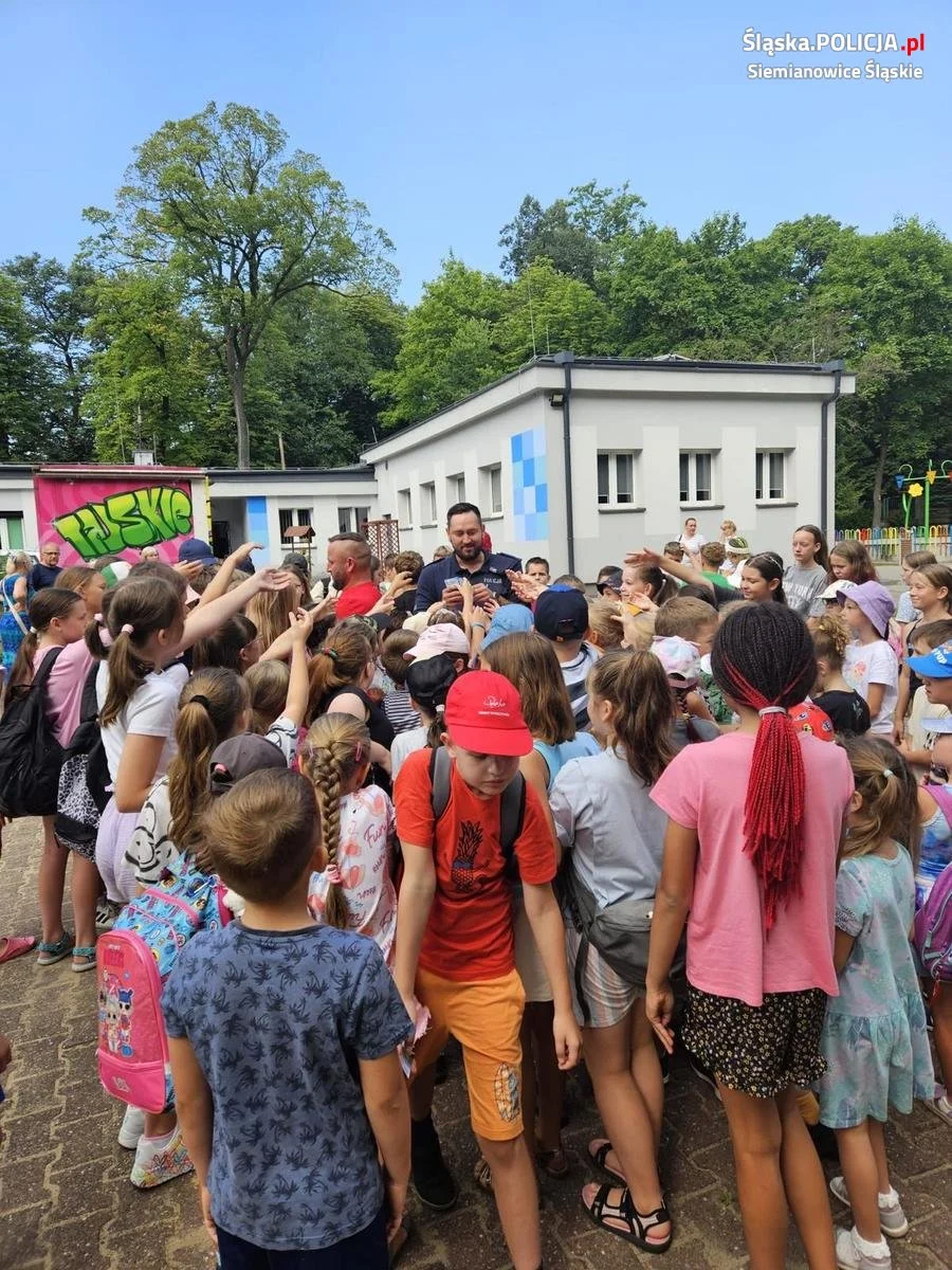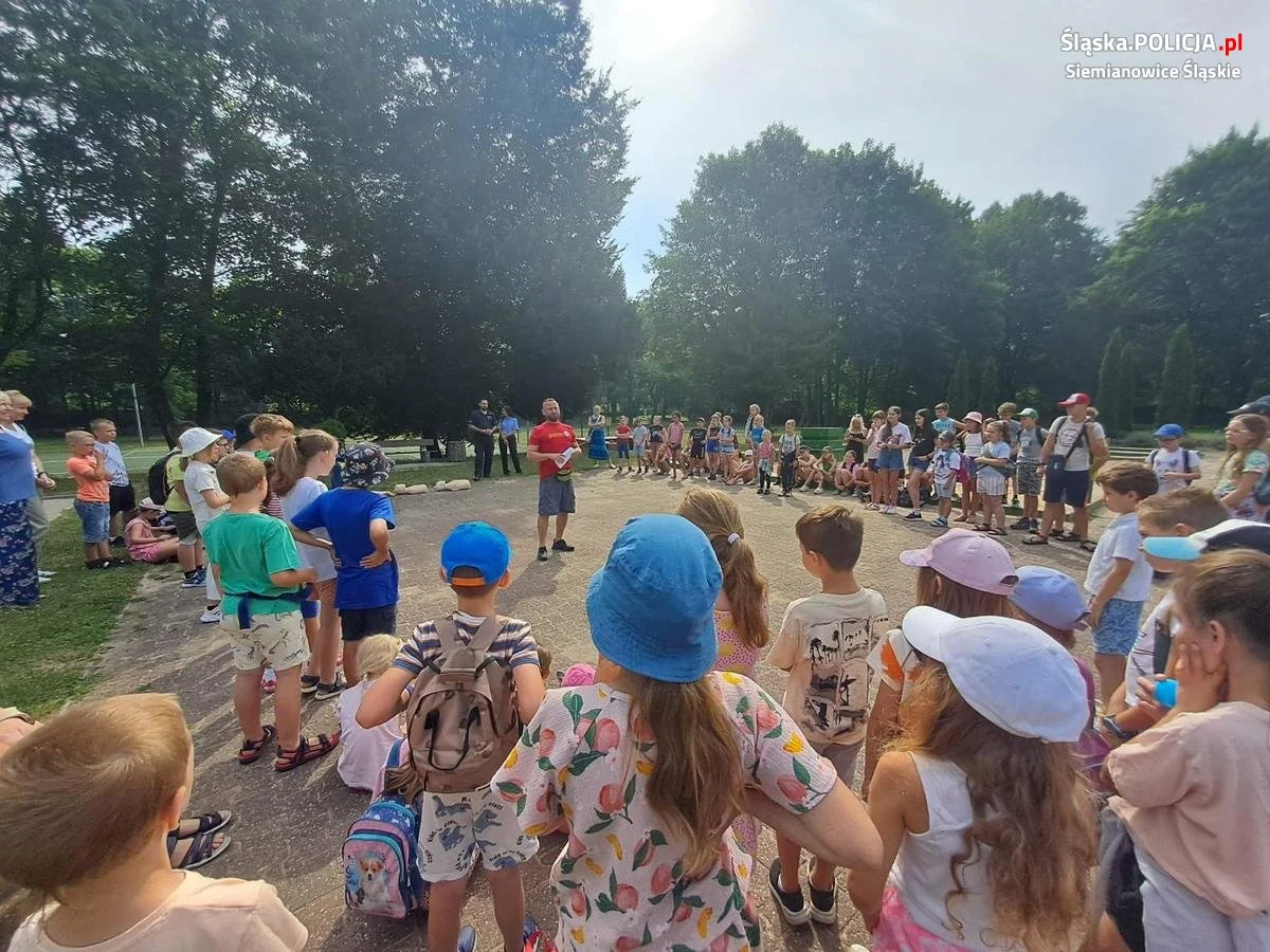 Wakacje to upragniony czas odpoczynku dla dzieci i młodzieży. Aby upłynęły one ciekawie, a przede wszystkim bezpiecznie, siemianowicki policjant spotkał się z kolonistami. Policjantowi towarzyszyli ratownik wodny oraz strażniczka miejska. Przekazali oni istotne informacje związane ze spędzaniem wolnego czasu nad wodą czy podwórku. Spotkanie odbyło się w MDK Jordan, gdzie dzieci mają zapewnioną opiekę podczas organizowanych tam półkolonii. Wpisało się w akcję „Kręci mnie bezpieczeństwo nad wodą”.