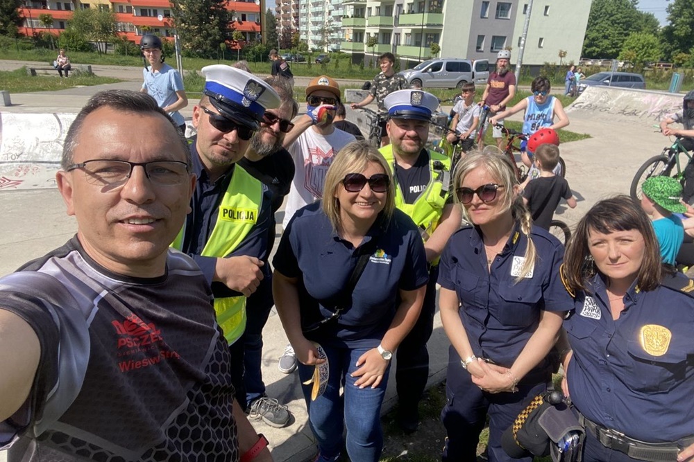 Miłośników jazdy na rowerach, deskorolkach, hulajnogach oraz rolkach przywitała Zastępca Prezydenta Miasta Siemianowic Śląskich Pani Beata Gałecka. Czekali na nich również policjanci z siemianowickiej drogówki, którzy udzielili im cennych rad dotyczących bezpiecznej jazdy i spędzania wolnego czasu. Spotkanie to wpisało się w ogólnopolską akcję “Jednośladem bezpiecznie do celu”.