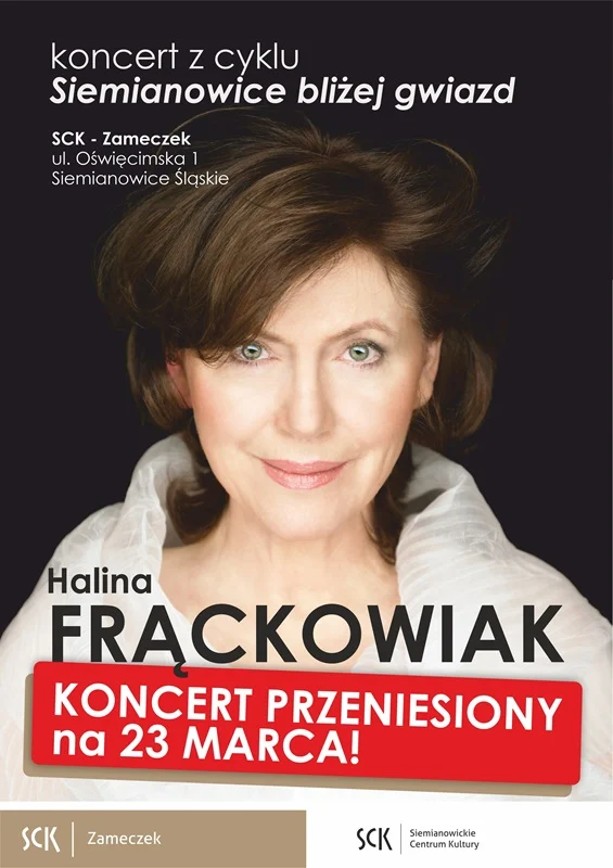 – Z przykrością informujemy, że z przyczyn niezależnych od Siemianowickiego Centrum Kultury koncert Haliny Frąckowiak zostaje przeniesiony na 23 marca 2025 r. Bilety zachowują ważność. – czytamy na stronie UM Siemianowice Śląskie