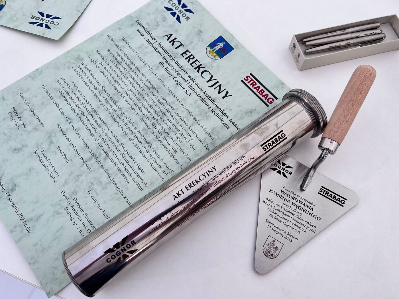 Podczas uroczystości WojewodaŚląski, Jarosław Wieczorek odczytał list gratulacyjny od Prezesa Rady Ministrów, Mateusza Morawieckiego, w którym premier przekazał słowa uznania dla wszystkich osób zaangażowanych w budowę walcowni. A zwieńczeniem ceremonii było podpisanie i wmurowanie aktu erekcyjnego przez prezydenta miasta, Rafała Piecha; prezesa zarządu Cognor, Przemysława Sztuczkowskiego i dyrektora budownictwa ogólnego STRABAG, Przemysława Kulisia.