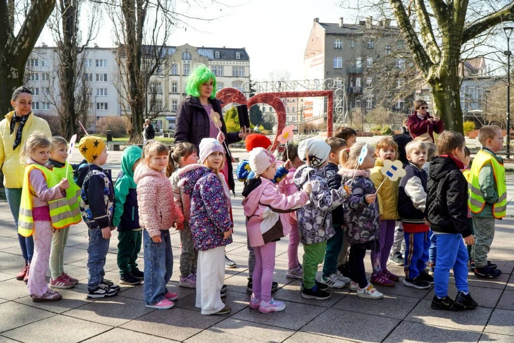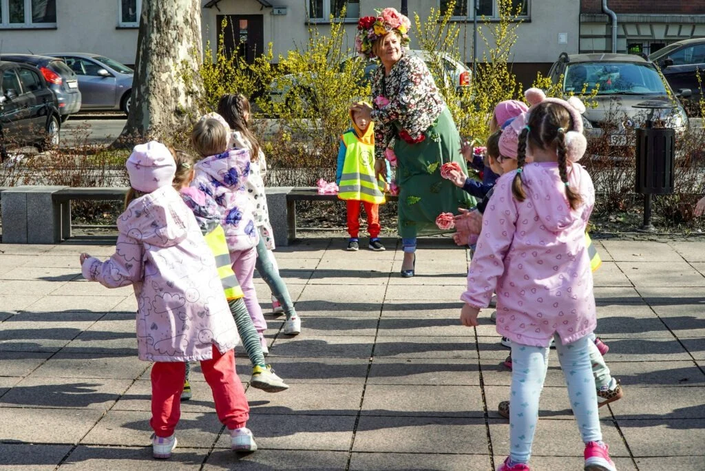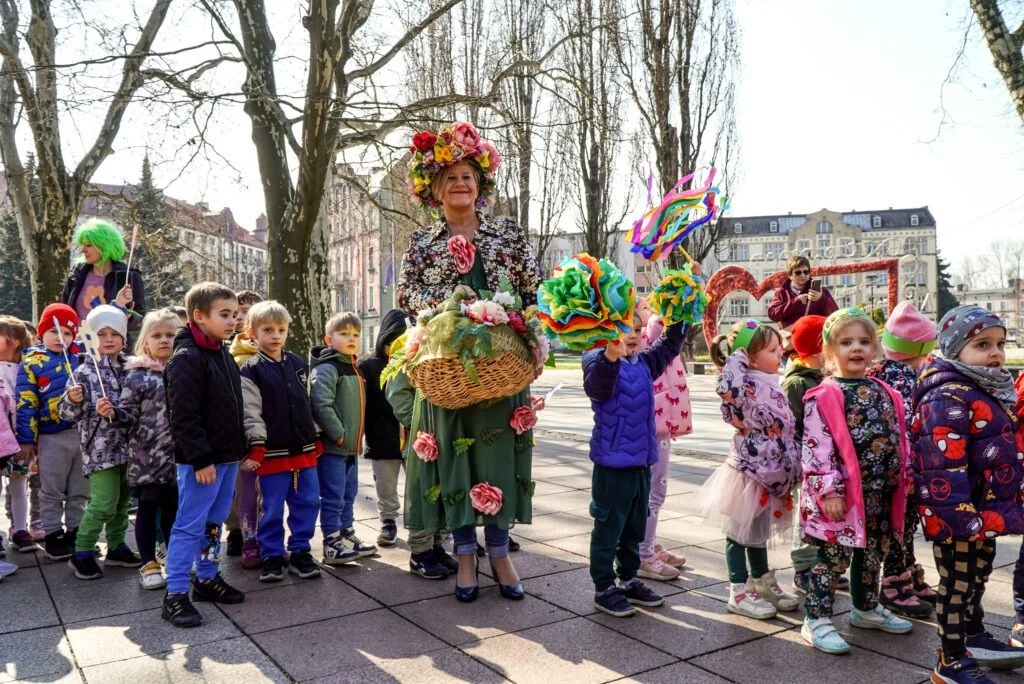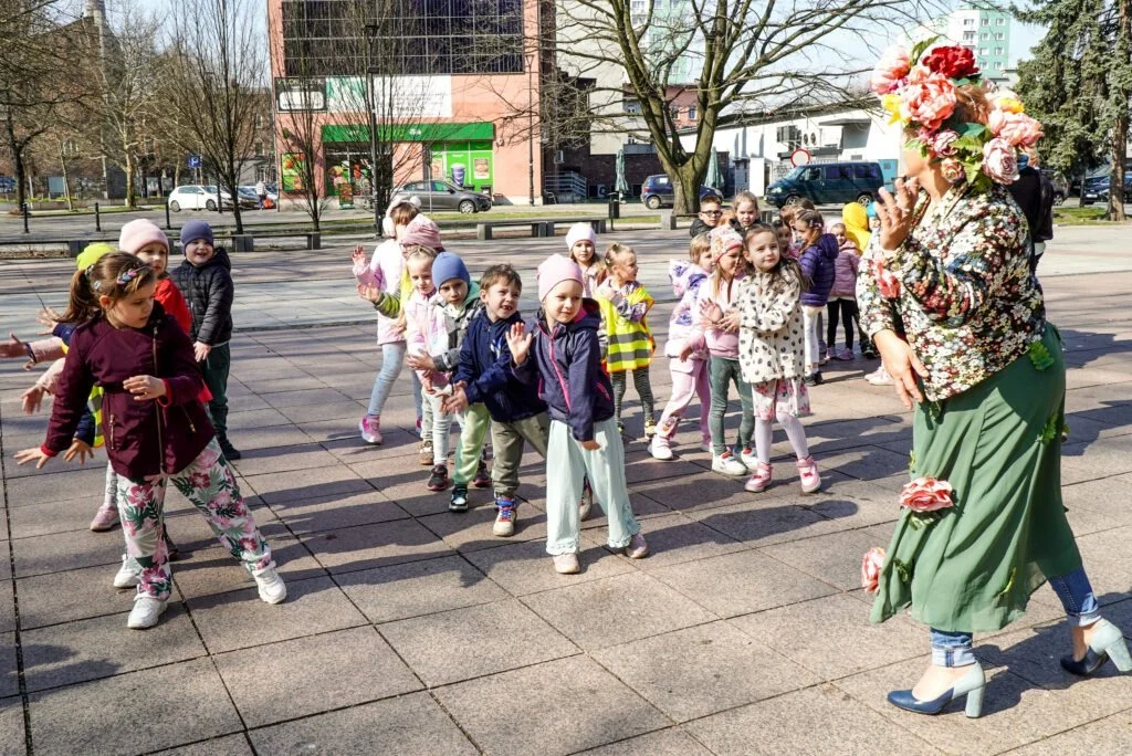 Poniedziałkowe przedpołudnie, 23 marca 2026 roku, na siemianowickim Rynku miało wyjątkowo radosny i kolorowy charakter. Wszystko za sprawą dzieci z Przedszkola nr 10, które przygotowały wspólne powitanie wiosny w samym sercu miasta.