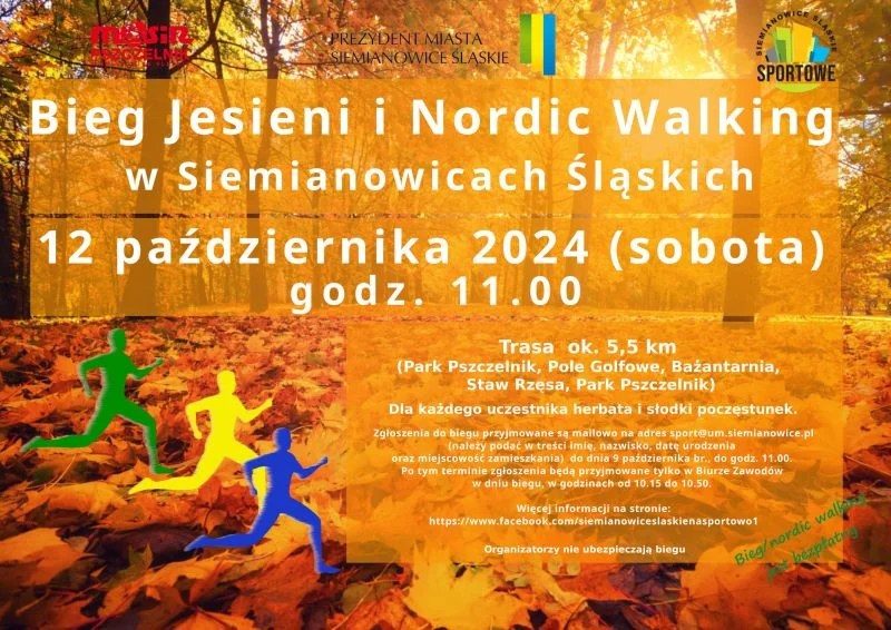 Wydział Kultury i Sportu Urzędu Miasta Siemianowice Śląskie oraz Miejski Ośrodek Sportu i Rekreacji „Pszczelnik” w Siemianowicach Śląskich zapraszają 12 października br. (sobota) na XVIII„Bieg Jesieni oraz Nordic Walking” o godz. 11.00.