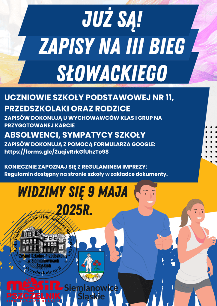 III Bieg Słowackiego oraz marsz nordic walking to wydarzenie, które łączy pokolenia uczniów, absolwentów i rodziców Szkoły Podstawowej nr 11 im. Juliusza Słowackiego. Organizatorzy kładą nacisk na promocję aktywności fizycznej, zdrowego stylu życia oraz integrację społeczności siemianowickiej. Dodatkowo impreza wpisuje się w obchody 120-lecia oświaty na Sadzawkach.