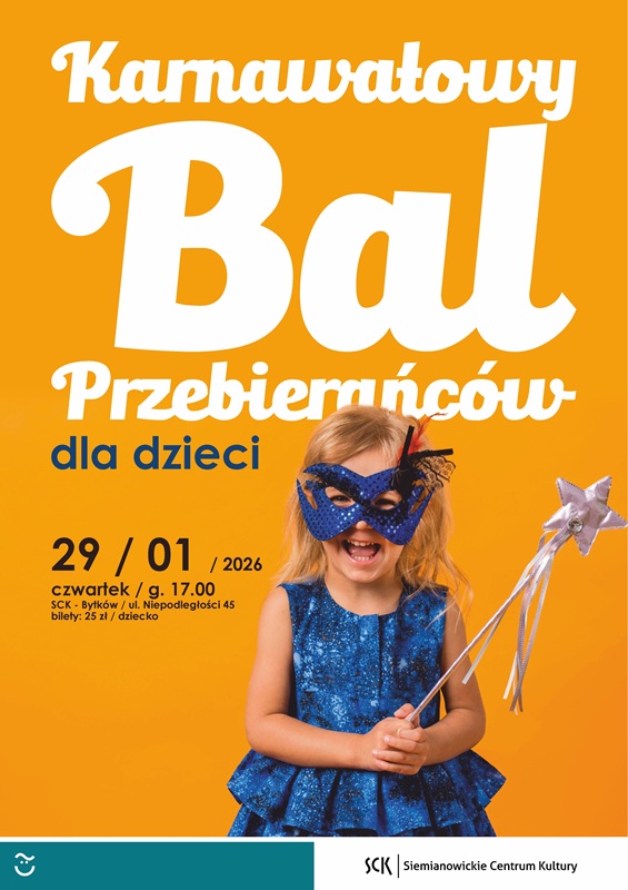 Siemianowickie Centrum Kultury – Bytków zaprasza najmłodszych mieszkańców na Karnawałowy Bal Przebierańców. Wydarzenie odbędzie się w czwartek 29 stycznia o godz. 17.00.