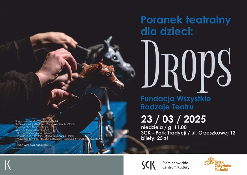 Bilety na spektakl „Drops” w cenie 25 zł można nabyć w kasach SCK lub online tutaj.