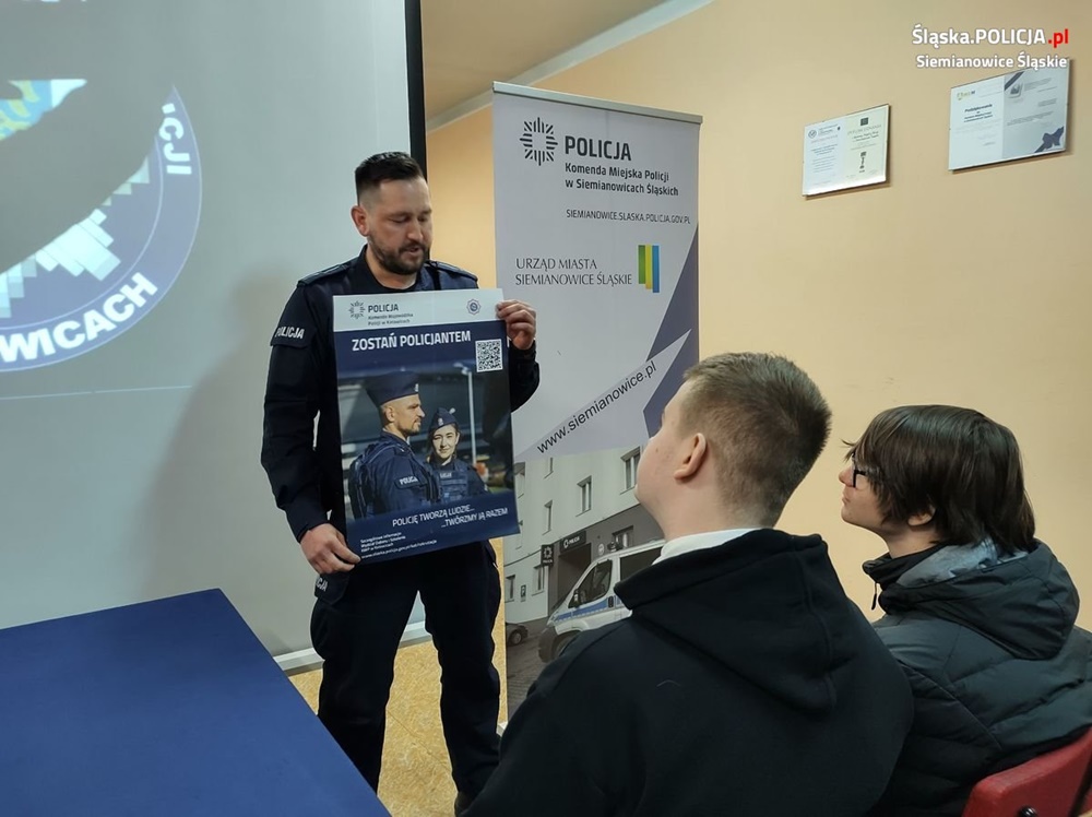 Specjalnie dla nich policjanci odsłonili arkany swojej służby, aby zachęcić młodych ludzi do związania swojego przyszłego życia zawodowego z mundurem. Uczniom została przybliżona charakterystyka służby w rożnych pionach Policji oraz sprzęt jakim dysponują stróże prawa. Omówiono także poszczególne etapy procesu rekrutacji i nie obyło się bez dawki profilaktyki.