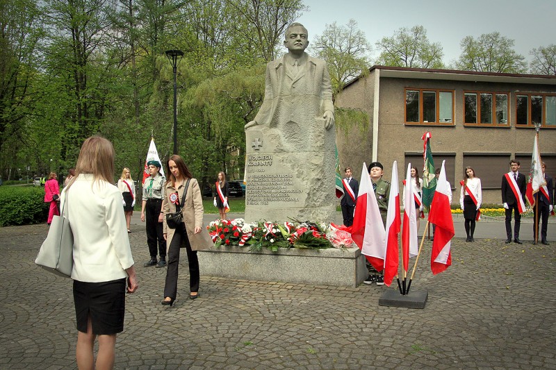 Ostatnim elementem dzisiejszych obchodów Święta 3 Maja w naszym mieście było złożenie kwiatów pod pomnikiem Wojciecha Korfantego przy Urzędzie Stanu Cywilnego.