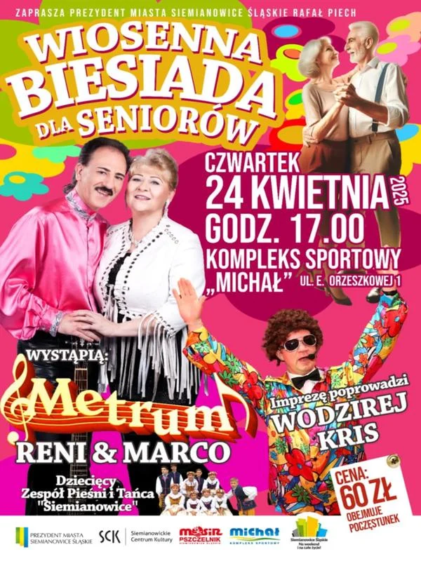 Siemianowickie Centrum Kultury oraz Miejski Ośrodek Sportu i Rekreacji zapraszają na wyjątkowe wydarzenie – Wiosenną Biesiadę dla Seniorów, która odbędzie się 24 kwietnia o godzinie 17:00 w hali Kompleksu Sportowego „Michał” w Michałkowicach.