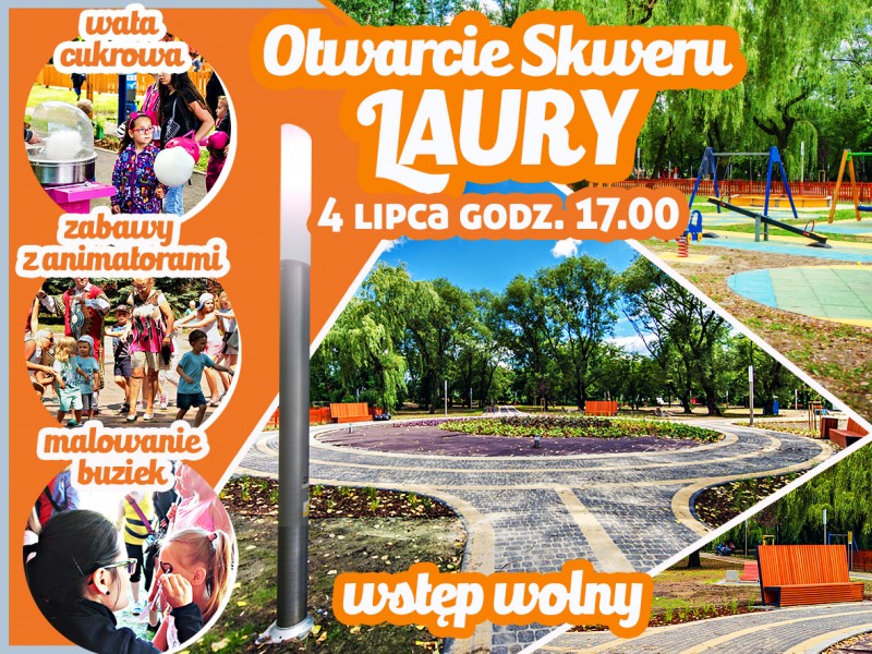 W najbliższą środę (4 lipca) o godz. 17.00 nastąpi oficjalne otwarcie odrestaurowanego Skweru Laura, na które serdecznie zapraszamy mieszkańców nie tylko Lauryhutte, ale wszystkich Siemianowiczan, a w szczególności dzieci, na które będzie czekała moc atrakcji (m.in.: popcorn, wata cukrowa, zabawy z animatorami itp.).