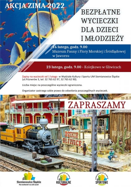 Wydział Kultury i Sportu, ul. Fitznerów 3 zaprasza na bezpłatne wycieczki rekreacyjne dla dzieci i młodzieży w ramach Akcji Zima 2022.