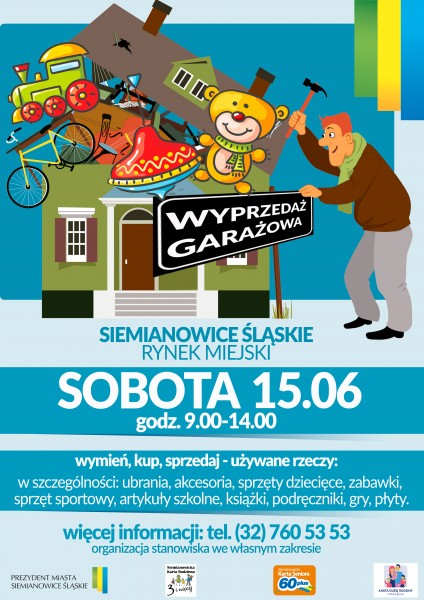 Już teraz zapraszamy Państwa na kolejną okazję wzięcia udziału w wyprzedaży garażowej w Siemianowicach Śląskich, która odbędzie się 15 czerwca na Rynku Miejskim koło fontanny w godzinach od 9:00-14:00.