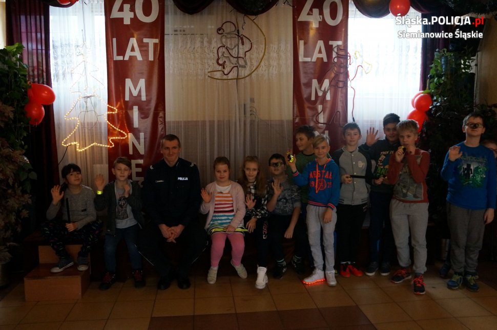 Razem z młodzieżą szkolną ćwiczył, w jaki sposób należy powiadomić służby ratownicze o zdarzeniu wymagającym ich pomocy. Uświadamiał, że ważna jest każda sekunda i nie należy wtedy panikować tylko skupić się na jak najszybszym wezwaniu pomocy bądź jej udzieleniu, jeżeli to nie zagraża naszemu własnemu bezpieczeństwu. Policjant rozdał dzieciom ulotki "Kręci mnie bezpieczeństwo na stoku", w których zawarte są podstawowe informacje dotyczące bezpieczeństwa podczas korzystania z nart czy deski snowboardowej. Młodzi siemianowiczaninie otrzymali również opaski odblaskowe, które sprawią, że podczas zmroku będą widoczniejsi dla kierowców.