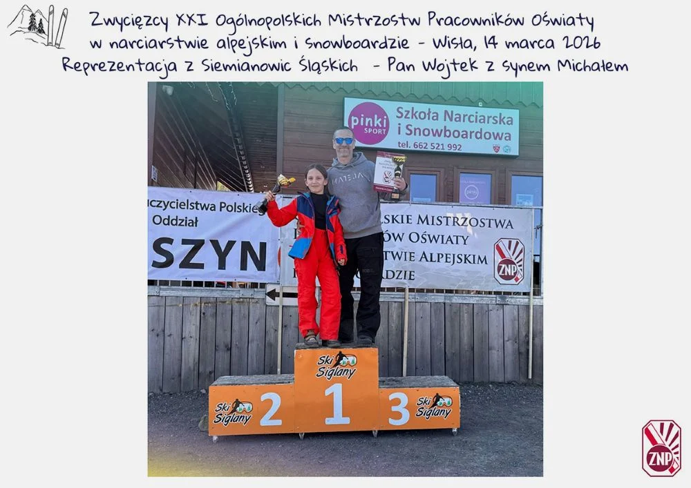 Z kolei w sobotę, 14 marca 2026 r., drużyny ZNP wzięły udział w XXI Ogólnopolskich Mistrzostwach Pracowników Oświaty w Narciarstwie Alpejskim i Snowboardzie. Zawody odbyły się w Ośrodku Narciarskim „SIGLANY” w Wiśle. Siemianowicki oddział ZNP reprezentowały dwie ekipy, w tym pracownicy oświaty wraz z rodzinami. Mimo trudnych warunków pogodowych, siemianowiczanie odnieśli sukcesy na najwyższym poziomie: