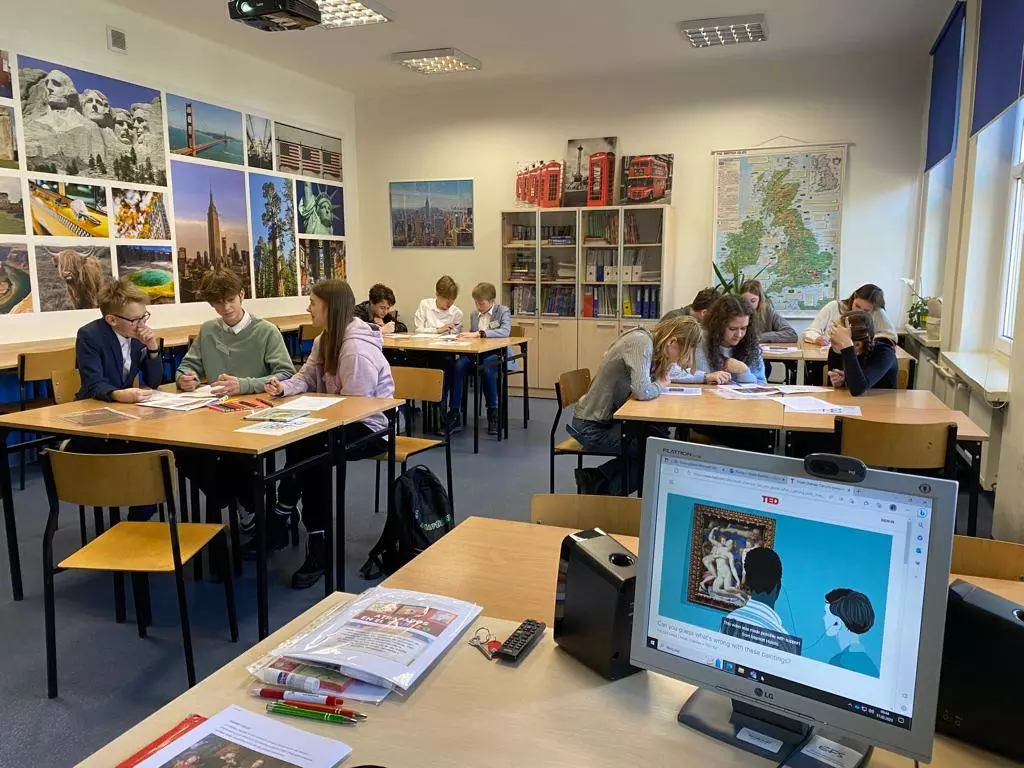 Uczestnicy – drużyny szkół podstawowych – stanęli przed nie lada wyzwaniem. Tegoroczna, 14 już, edycja konkursy przebiegała pod hasłem: Matejko – sztuka i wyobraźnia. Dlatego wszystkie zadania konkursowe były związane z patronem II LO lub szeroko pojętą sztuką. Jedne były trudne – jak te z historii (dopasowanie postaci z obrazów Mistrza do epoki czy informacji z ich życia było nie lada wyzwaniem), a inne łatwiejsze, za to wymagające kreatywności, jak tworzenie plakatu na języku polskim. Na językach obcych – angielskim, do wyboru: hiszpańskim lub niemieckim, oprócz słownictwa tematycznego sprawdzana była kreatywność uczniów a zadania dotyczyły szeroko pojętej sztuki i twórczych postaci, nie tylko samego Jana Matejki. Zadania matematyczne z kolei wymagały od uczniów sprawnego przeliczania skali obrazów i dokonywania innych obliczeń, do których dzieła Jana były doskonałym materiałem, a na geografii należało obliczyć najkrótszą trasę wycieczki, obejmującej miejsca związane z Matejką i jego twórczością. To tylko przykłady zadań, a należy pamiętać, że wartością dodaną była potrzeba pracy w zespole, tak ważna w dzisiejszych czasach. Zadania na platformie Quizizzs pomogły poznać szkołę, a pyszne ciastka – zrelaksować się. Dla każdego coś dobrego.