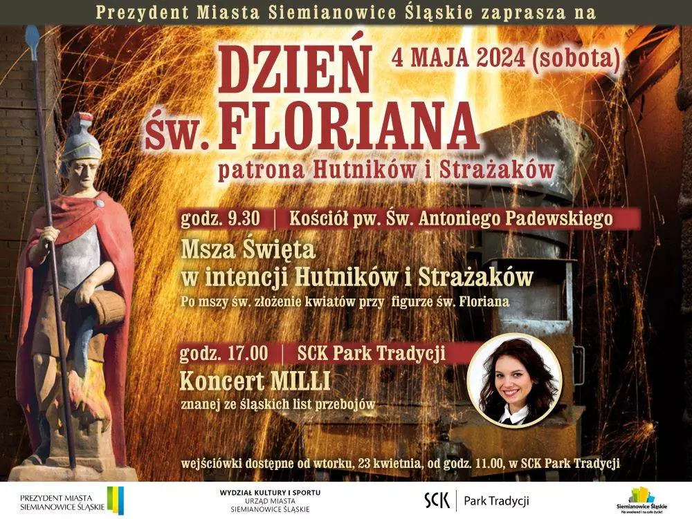 4 maja, jak co roku będziemy obchodzić w naszym mieście Dzień Świętego Floriana. Oprócz tradycyjnej Mszy Świętej w intencji Hutników i Strażaków i złożenia kwiatów pod pomnikiem, odbędzie się również koncert znanej ze śląskich list przebojów – Milli.
