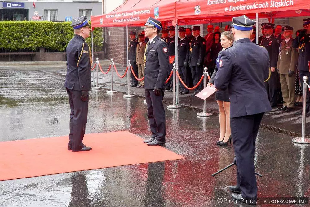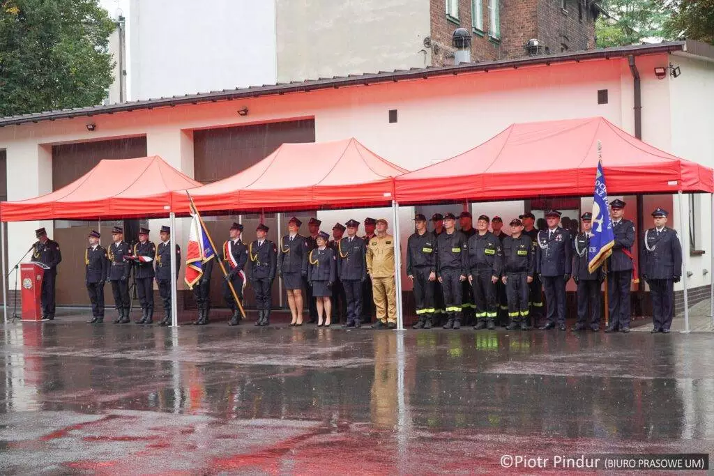 W uroczystości wzięli udział przedstawiciele władz samorządowych, komendanci straży pożarnej z województwa śląskiego, a także reprezentanci służb mundurowych i zaprzyjaźnionych instytucji. Zbiórka rozpoczęła się od wprowadzenia sztandaru Komendy Miejskiej PSP oraz złożenia meldunku Śląskiemu Komendantowi Wojewódzkiemu PSP, starszemu brygadierowi Wojciechowi Kruczkowi, przez dowódcę uroczystości, starszego kapitana Kamila Kwandransa.