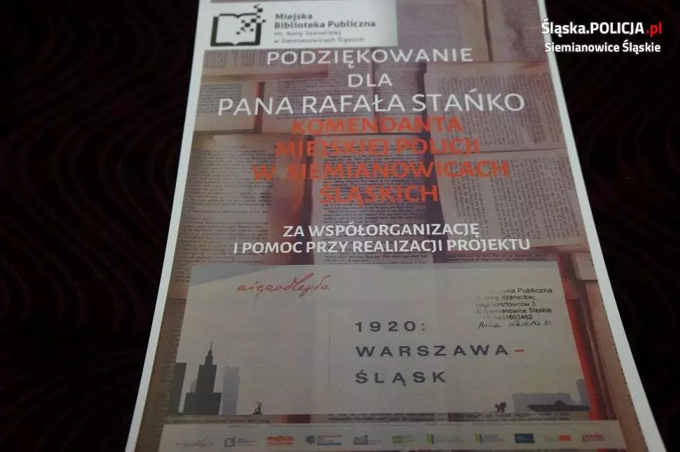 Za udział w tym programie dyrekcja Miejskiej Biblioteki Publicznej w Siemianowicach Śląskich wręczyła podziękowania dla Komendanta Miejskiego Policji w Siemianowicach Śląskich nadkom. Rafała Stańko oraz dzielnicowego mł.asp. Mariusza Farat.