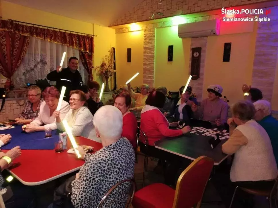 Dzielnicowy asp.szt. Tomasz Gabryś odwiedził seniorów z klubu Jarzębinka. W ramach akcji "Bądź widoczny, bądź bezpieczny" rozdał odblaskowe opaski i zachęcił do ich noszenia zawsze, gdy wyjdą z domu. Dzięki temu staną się 5-krotnie bardziej widoczni dla kierowców. To spowoduje, że zmotoryzowani będą mieli odpowiedni czas na zareagowanie, gdy zauważą ich w pobliżu drogi. Zachęcamy każdego mieszkańca do odbioru odblasków w siedzibie komendy Policji, straży miejskiej i w urzędzie miasta.