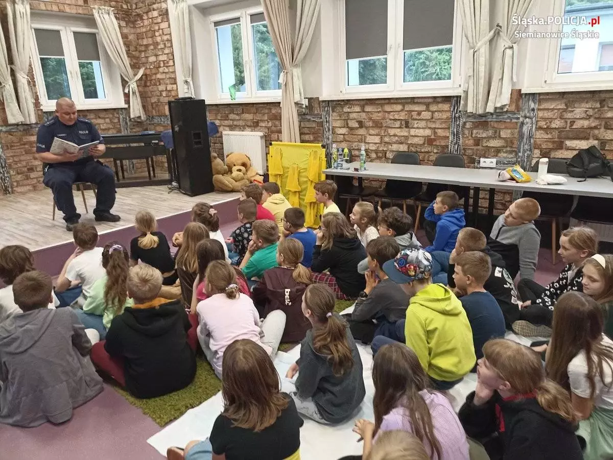 Dzielnicowy rejonu służbowego nr 1 młodszy aspirant Artur Niedzielski wziął wczoraj udział w imprezie „Czytanie na polanie”, która została zorganizowana przez siemianowicką Miejską Bibliotekę Publiczną imienia Anny Szaneckiej.