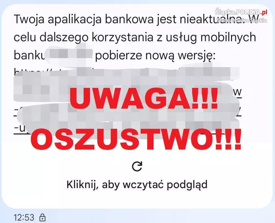 Mundurowi przestrzegają przed oszustami podszywającymi się pod znane banki i wysyłającymi SMS-y z linkiem do aktualizacji aplikacji mobilnej. Po kliknięciu w link, przestępcy mogą przejąć kontrolę nad naszym urządzeniem, w tym również uzyskać dostęp do naszej bankowości internetowej.