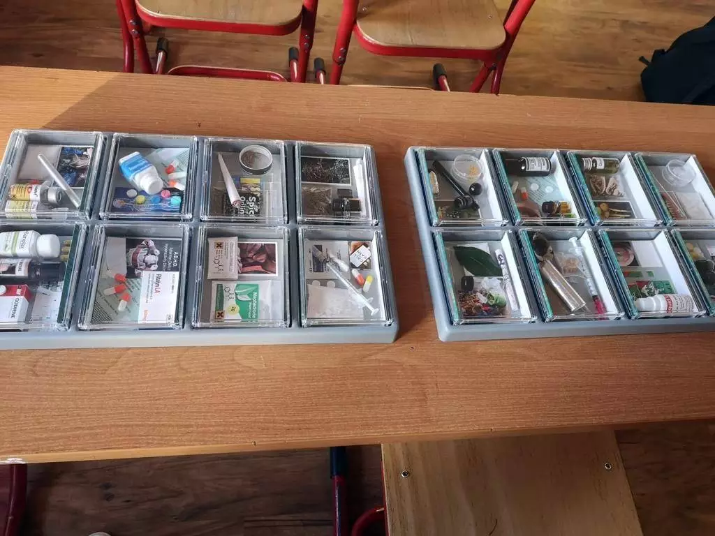 Było to możliwe dzięki specjalnej walizce profilaktycznej, w której umieszczone są duplikaty danych rodzajów narkotyków. Walizka ta została zakupiona ze środków siemianowickiego magistratu i świetnie się sprawdza w tego typu prelekcjach. Bez fachowej wiedzy, niektóre narkotyki mogły umknąć uwadze osobom dorosłym, ponieważ swoim wyglądem przypominały np. kolorowe tabletki czy znaczki. A też często w mniemaniu osób starszych tkwi pogląd, że narkoman kojarzy się z igłą i strzykawką. Dotyczy to się również przedmiotów, które używają osoby zażywające dany środek odurzający. Grono pedagogiczne mogło zapoznać się z nimi i przez to będzie mieć wzmożoną czujność wśród uczniów, co będzie skutkowało możliwością wczesnej interwencji.