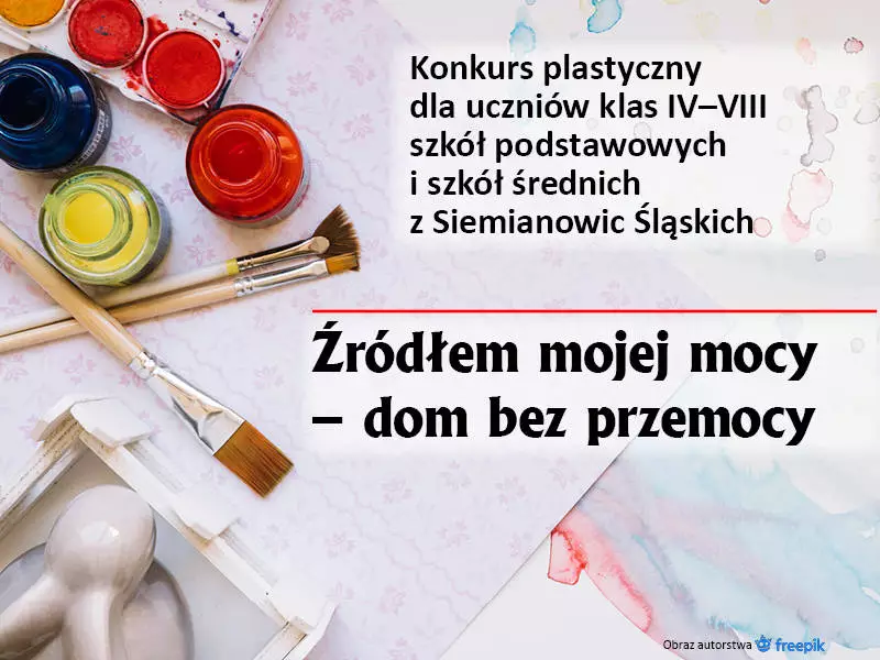 Zespół Interdyscyplinarny ds. Przeciwdziałania Przemocy w Rodzinie w Siemianowicach Śląskich serdecznie zaprasza do udziału w konkursie plastycznym pn. „Źródłem mojej mocy – dom bez przemocy”, który skierowany jest do uczniów klas IV–VIII szkół podstawowych, a także do uczniów szkół średnich z terenu Siemianowic Śląskich.