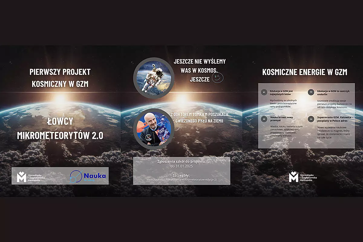 Program „Łowcy mikrometeorytów” mogliśmy ufundować dzięki wsparciu naszego partnera, Górnośląsko-Zagłębiowskiej Metropolii. Jednym z głównych celów tego związku metropolitalnego jest stworzenie ze swojego regionu miejsca przyjaznego nauce, ze szczególnym wsparciem nowoczesnej edukacji dzieci i młodzieży.