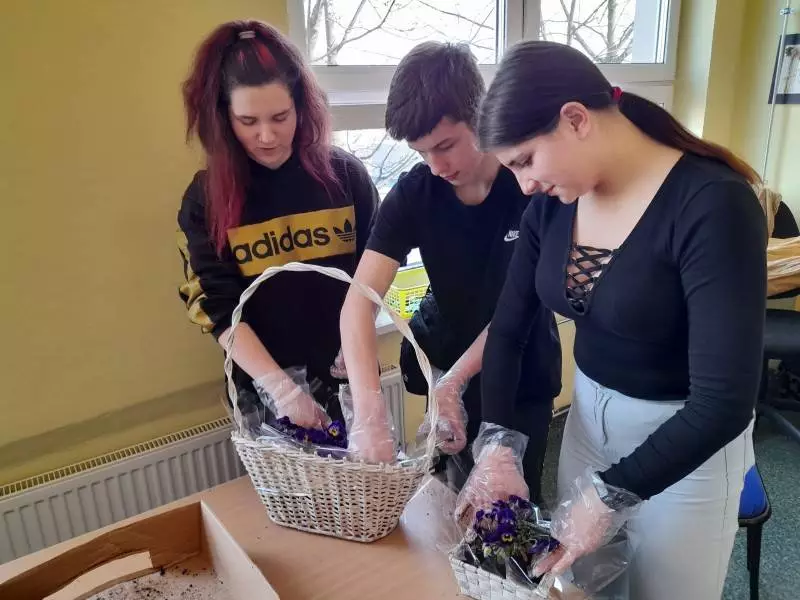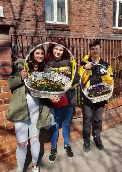 Przygotowała więc kwiatowe kompozycje z bratków, które zasadzone w wiklinowych koszach nie tylko będą stanowić wiosenną dekorację pensjonatu, ale na dodatek i przede wszystkim są wyrazem sympatii młodzieży dla zamieszkujących dom starszych osób. Ten miły gest będzie jeszcze długo po świętach cieszył oczy mieszkańców DPS.