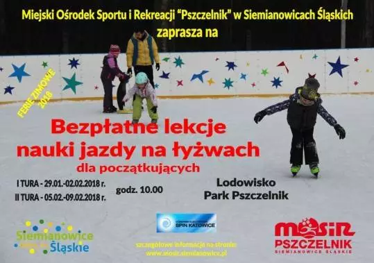 W czasie ferii zimowych Miejski Ośrodek Sportu i Rekreacji „Pszczelnik” w Siemianowicach Śląskich wspólnie z Uczniowskim Klubem Łyżwiarskim „Spin” Katowice organizuje dla dzieci bezpłatne lekcje nauki jazdy na łyżwach „stawiamy pierwsze kroki”.