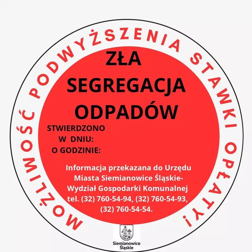 - w przypadku powtórzenia się sytuacji po raz drugi, ponownie na pojemnik zostanie nalepiona nalepka. Tym samym konsekwencją braku segregacji będzie decyzja nakładająca na mieszkańców lub właścicieli nieruchomości podwyższoną opłatę.