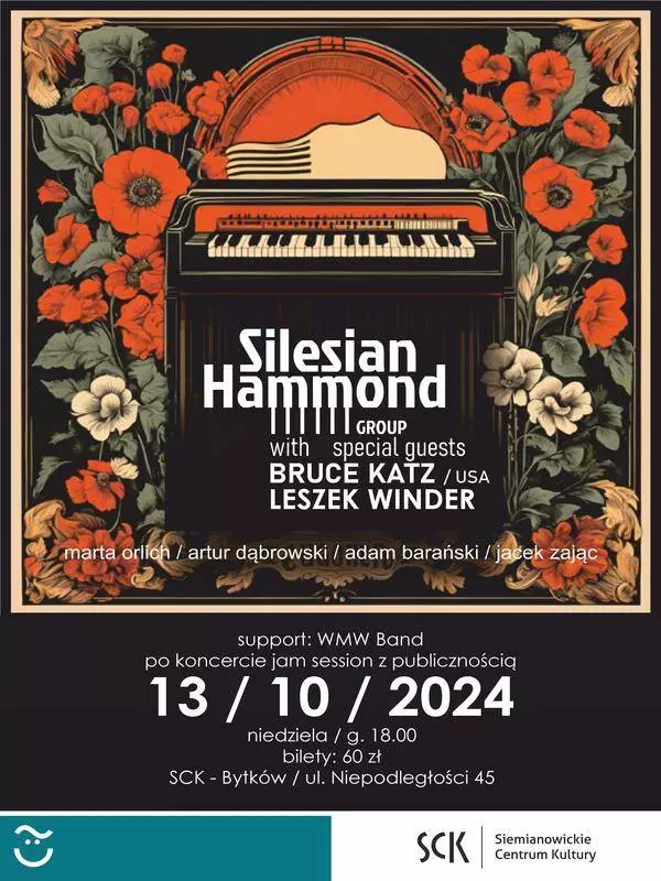 Ten muzyczny wieczór wprowadzi publiczność w świat muzyki Hammondów, pełen bogatych brzmień, rytmicznych pasaży oraz emocjonujących solówek. Połączenie doświadczenia Bruce’a Katza z energią i pasją Silesian Hammond Group gwarantuje niezapomniane doznania muzyczne!