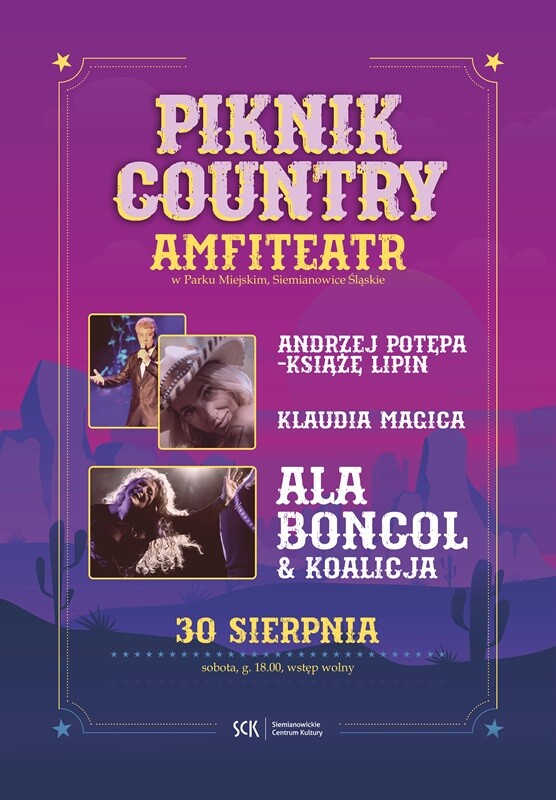Siemianowickie Centrum Kultury zaprasza na wyjątkowe wydarzenie w samym sercu miasta. W sobotę 30 sierpnia 2025 roku o godzinie 18.00 odbędzie się Piknik Country w amfiteatrze miejskim. To świetna okazja, by posłuchać na żywo wyjątkowej muzyki i spędzić czas w towarzystwie lokalnej społeczności.