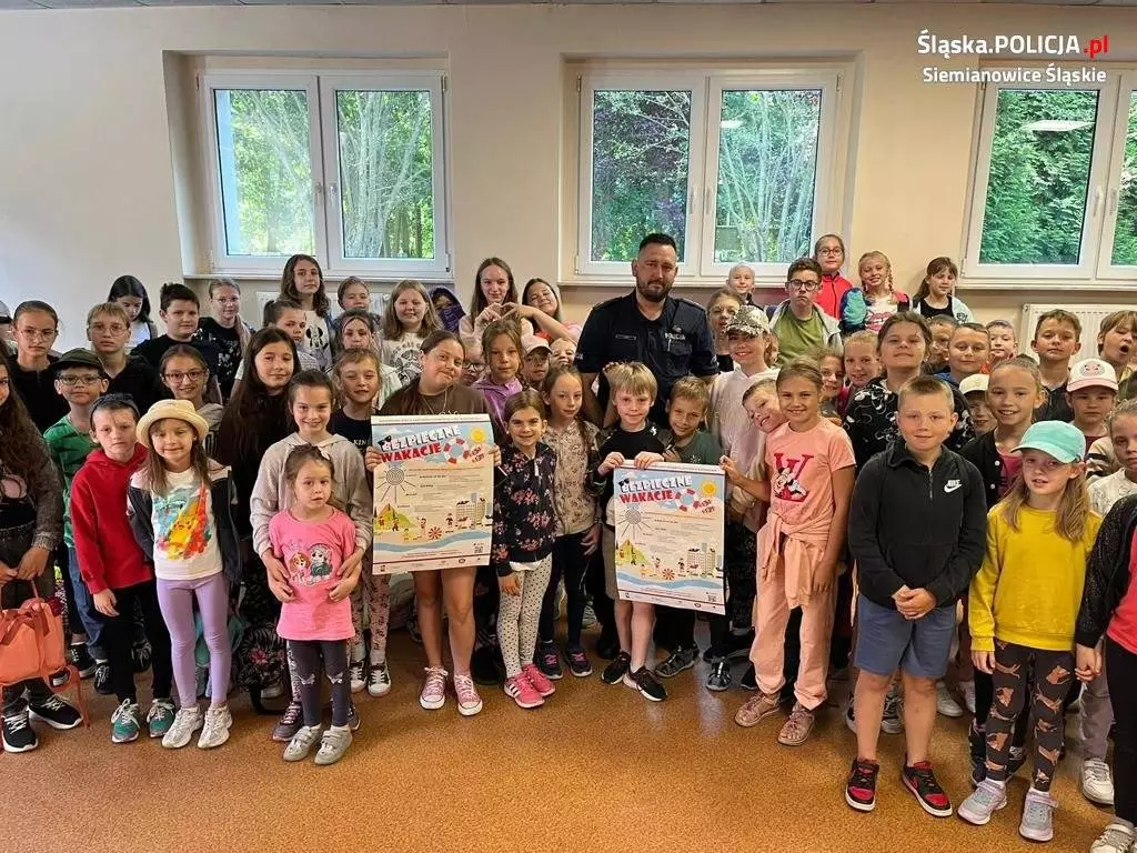 Wakacje to beztroski czas dla milusińskich. Czas zabaw, wypoczynku nad wodą czy w górach. Obojętnie, jaka forma wypoczynku zostanie wybrana, należy pamiętać o podstawowych zasadach bezpieczeństwa. Z tego właśnie powodu, aby wakacje mijały bezpiecznie, policyjny profilaktyk spotkał się z dziećmi podczas półkolonii w MDK Jordan i DK Chemik.