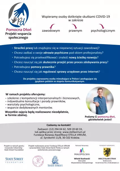 Więcej informacji o projekcie oraz formularz zgłoszeniowy do aplikowania on-line znajdziecie na stronie: https://www.stellavirium.org/projekt-pomocna-dlon/.