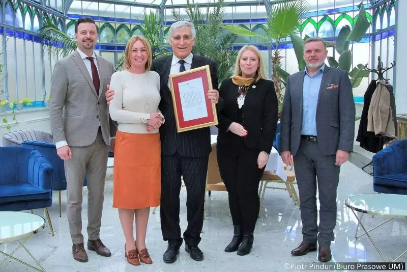 Prezydent Siemianowic Śląskich, wraz z towarzyszącymi mu: I zastępcą prezydenta miasta Agnieszką Gładysz, II zastępcą prezydenta miasta Martą Suchanek-Bijak i sekretarzem miasta Adamem Skowronkiem, wręczył Panu Radnemu Zawadzkiemu list gratulacyjny i podziękował za nieocenioną pomoc, jakiej z jego strony doświadczyli mieszkańcy naszego miasta.