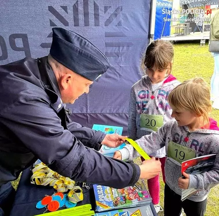 Każdy zainteresowany mógł otrzymać broszurę opracowaną przez Miejski Ośrodek Pomocy Społecznej w Siemianowicach Śląskich, w której zawarte były informacje, gdzie można uzyskać pomoc i wsparcie. Na stanowisku profilaktycznym stróże prawa rozdawali opaski, smycze odblaskowe i prosili o ich noszenie również w terenie zabudowanym, co nie jest wymagane przez przepisy prawa, ale wpływa na poprawę ich bezpieczeństwa. Taki odblask zwiększa widoczność pieszego nawet 5-krotnie. Dlatego warto poruszać się po drogach właśnie z nim. Najmłodsi otrzymywali kolorowanki, a dorośli Koperty Życia. I tak ze sportowym duchem, bazą wiedzy o bezpieczeństwie i gadżetami profilaktycznymi uczestnicy II Biegu Hazoka mogli udać się do swoich domów oraz bliskich i rozpocząć bezpieczne przygotowania do Wielkanocy.