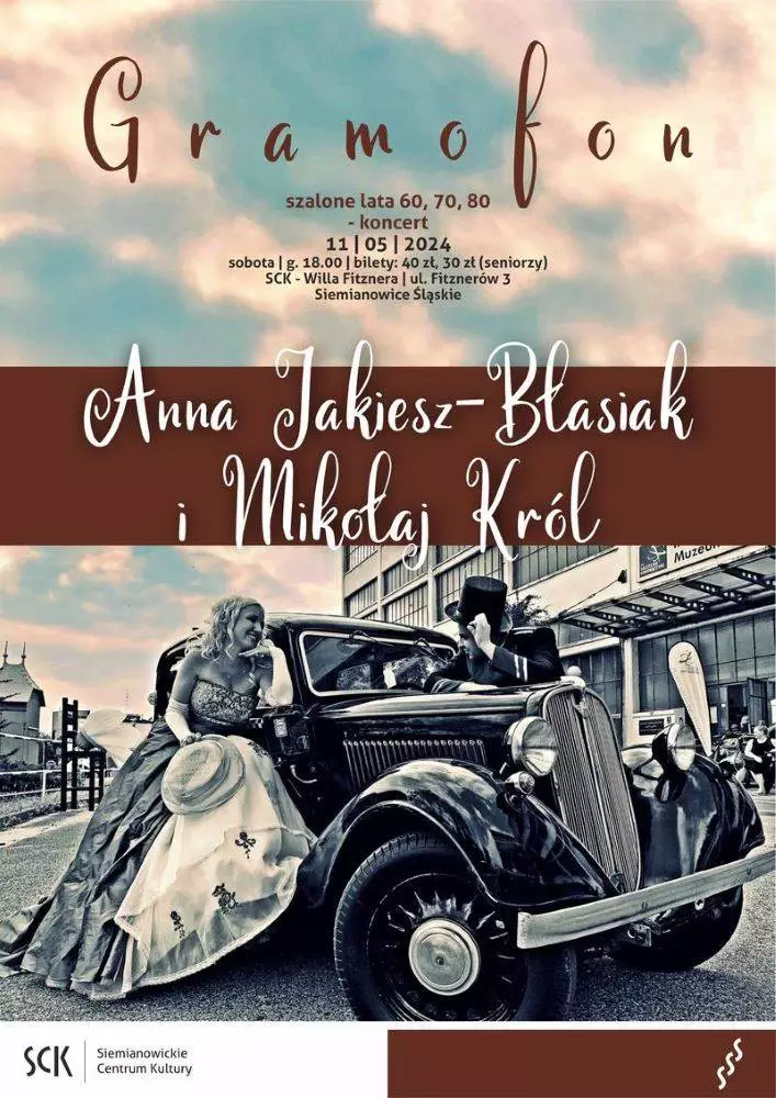 „Gramofon – szalone lata 60, 70, 80!” to kolejny spektakl muzyczny w wykonaniu Anny Jakiesz-Błasiak i Mikołaja Króla.