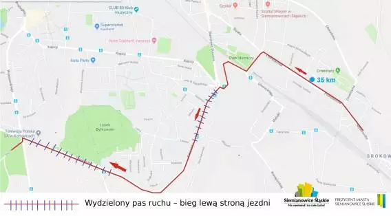 W celu zminimalizowania utrudnień, po ustaleniach z Policją na ulicy Katowickiej od Ronda Siemion do ulicy Lipowej zostanie wydzielony pas ruchu, który będzie wjazdem na osiedle Tuwim, a wyjazdem będzie ulica Leśna. Policjanci będą również w newralgicznych miejscach kierować ruchem poprzecznym, podczas przerw pomiędzy biegnącymi.